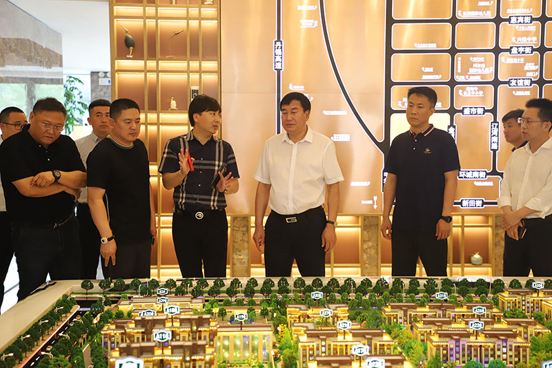 耿敏區(qū)長(zhǎng)一行首先來到天格·錦翠書院營(yíng)銷中心沙盤區(qū),聽取了天格企業(yè)總裁邢峰濤關(guān)于項(xiàng)目的規(guī)劃設(shè)計(jì)和工程進(jìn)展等情況的詳細(xì)匯報(bào)。