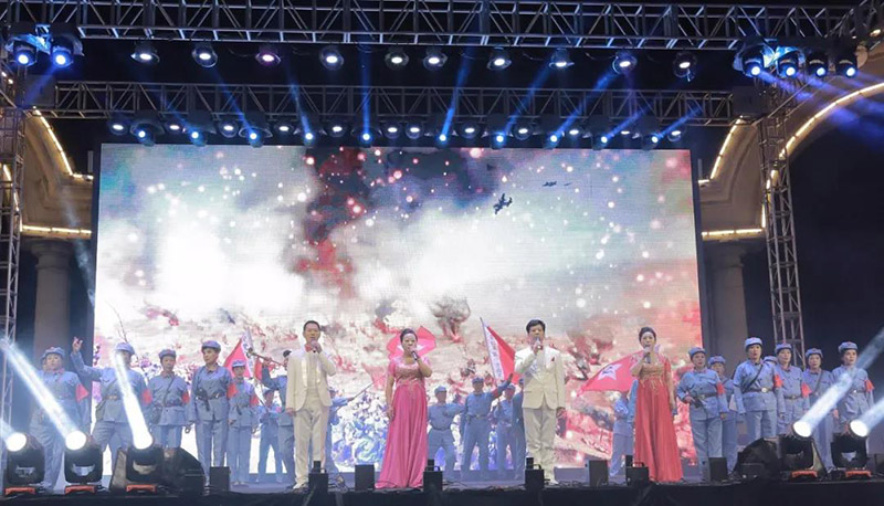 接下來,晚會正式進(jìn)入演出環(huán)節(jié)?!段液臀业淖鎳贰ⅰ豆埠蛧畱佟?、《中國夢》、《城里的月光》以時代主旋律歌曲表達(dá)了傳統(tǒng)中秋佳節(jié)團(tuán)圓主題、獻(xiàn)禮祖國71周年華誕。