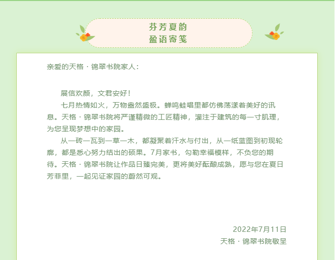 芬芳夏韻 盈語寄箋丨天格 · 錦翠書院B區(qū)7月份工程進度播報
