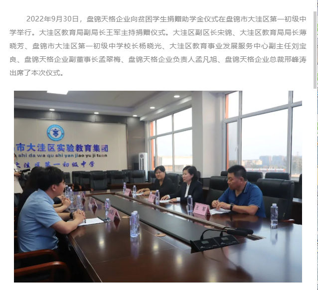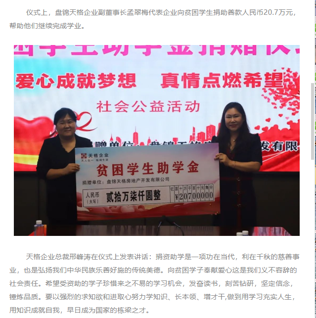 愛(ài)心助學(xué) 筑夢(mèng)未來(lái)丨盤(pán)錦天格企業(yè)向貧困學(xué)生捐資助學(xué)