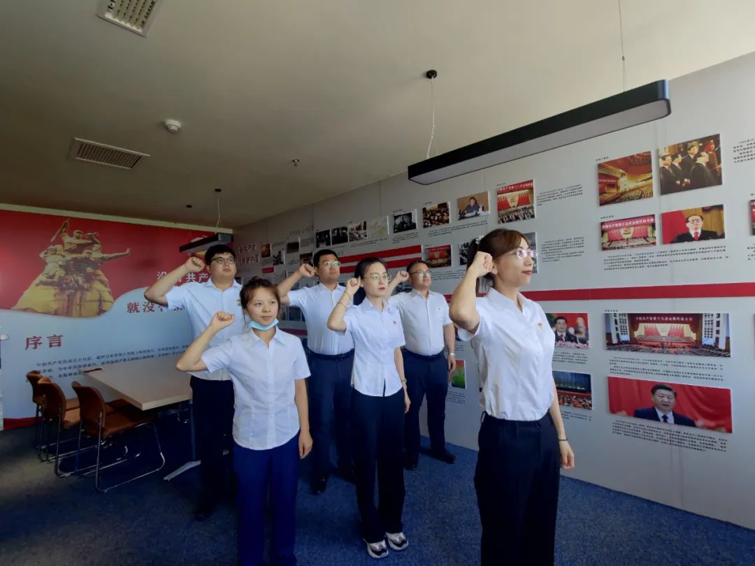 “我志愿加入中國共產(chǎn)黨,擁護(hù)黨的綱領(lǐng),遵守黨的章程,履行黨員義務(wù)……”面向黨旗,全體黨員舉起右拳,共同重溫入黨誓詞。這莊嚴(yán)而神圣的時(shí)刻,既是對(duì)過去的銘記,更是對(duì)未來的承諾。鏗鏘有力的錚錚誓言,表達(dá)了大家堅(jiān)定的政治信念和飽滿的精氣神。