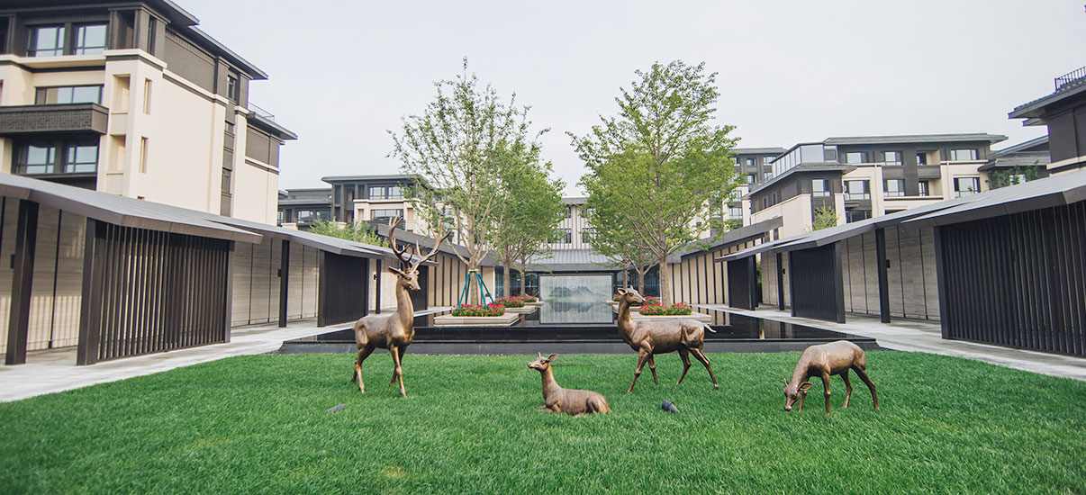 天格·錦翠書(shū)院采用新中式建筑風(fēng)格,以現(xiàn)代手法詮釋中式建筑風(fēng)格,適度提煉中式建筑的造型語(yǔ)言,總結(jié)中式建筑居住模式中的空間關(guān)系,包括院落空間與街道空間,重現(xiàn)中式建筑與自然元素的和諧關(guān)系,創(chuàng)造與自然良性對(duì)話的居住氛圍。在園林景觀設(shè)計(jì)上,以“三觀九制”的中式文化內(nèi)涵,七進(jìn)歸家禮序的空間脈絡(luò),營(yíng)造一方雋秀雅境,帶給業(yè)主們以理想和現(xiàn)實(shí)的雙重享受。園區(qū)內(nèi)還規(guī)劃設(shè)計(jì)了一片既可以容納集體活動(dòng)、又可以提供個(gè)性活動(dòng)的開(kāi)放式草坪活動(dòng)區(qū),同時(shí)還打造了約500m2的全塑膠社區(qū)兒童活動(dòng)空間、青年健身場(chǎng)地,為業(yè)主提供了一個(gè)具有休閑和人文修養(yǎng)的社交平臺(tái)。